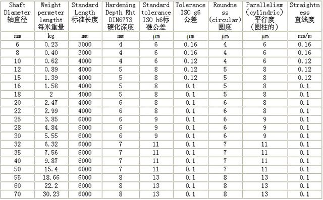 根据要求,我们可以提供不在列表中直径的特殊长度和公差尺寸的轴。