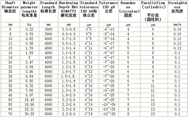 根据要求,我们可以提供不在列表中直径的特殊长度和公差尺寸的轴。